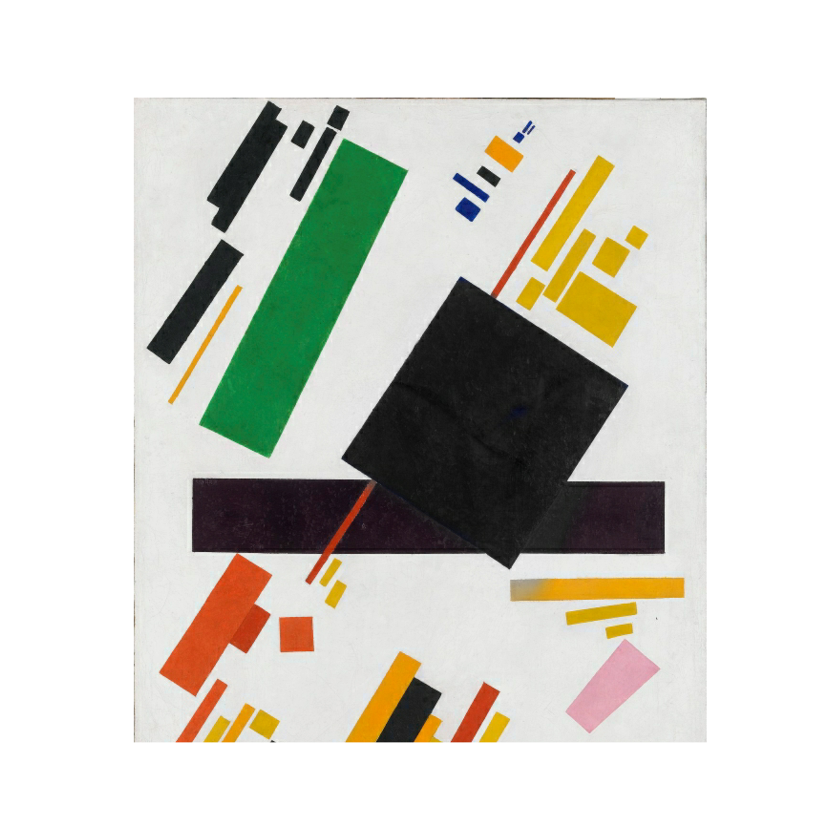 Малевич, куда же без него! Какого цвета квадрат на переднем плане?